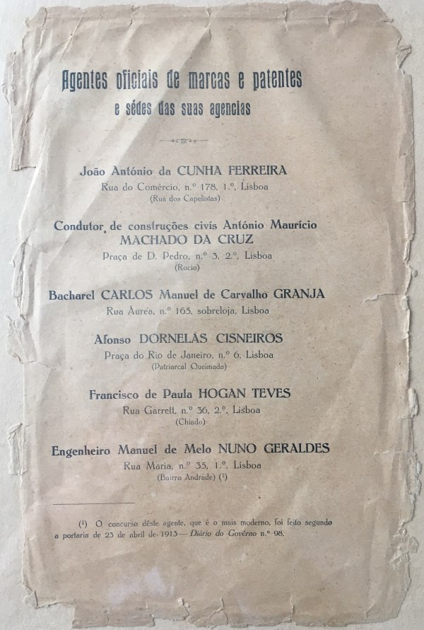 Afonso D'Ornellas, futuro impulsionador e patrono no lançamento do escritório que viria a ser fundado por Gastão da Cunha Ferreira, é neste ano nomeado como Agente de Marcas e Patentes (denominação prévia de Agente Oficial da Propriedade Industrial).