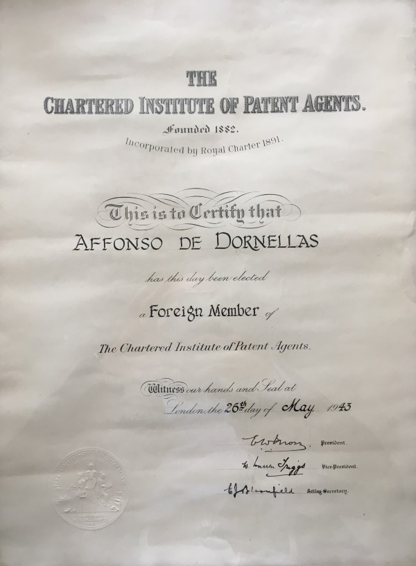 Afonso D'Ornellas é neste ano aceite como membro estrangeiro de The Chartered Institute of Patent Agents.