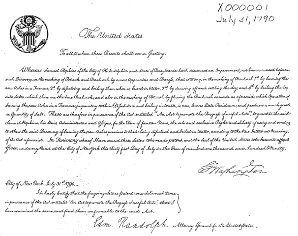 O Patent Act de 1790 foi o primeiro estatuto de patente aprovado pelo governo federal dos Estados Unidos. Foi promulgada a 10 de abril de 1790, cerca de um ano após a constituição ter sido ratificada e um novo governo ter sido organizado. A lei era concisa, definindo uma patente nos EUA como "qualquer arte, motor, máquina, dispositivo útil, ou qualquer melhoria não antes conhecida ou usada". A patente concedia ao requerente o "direito exclusivo e a liberdade de fazer, construir, usar e comercializar a terceiros para ser usado" sobre a sua invenção.
